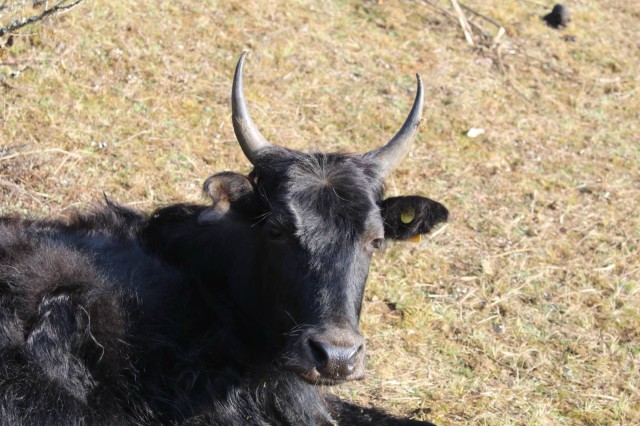 Yaks are large, long-haired bovines found primarily in the mountainous regions of the Himalayas, They are well-adapted to high altitudes and cold climates, possessing thick fur and strong bodies. Domesticated yak are commonly used by humans for their milk, meat, and fur, as well as for transportation.